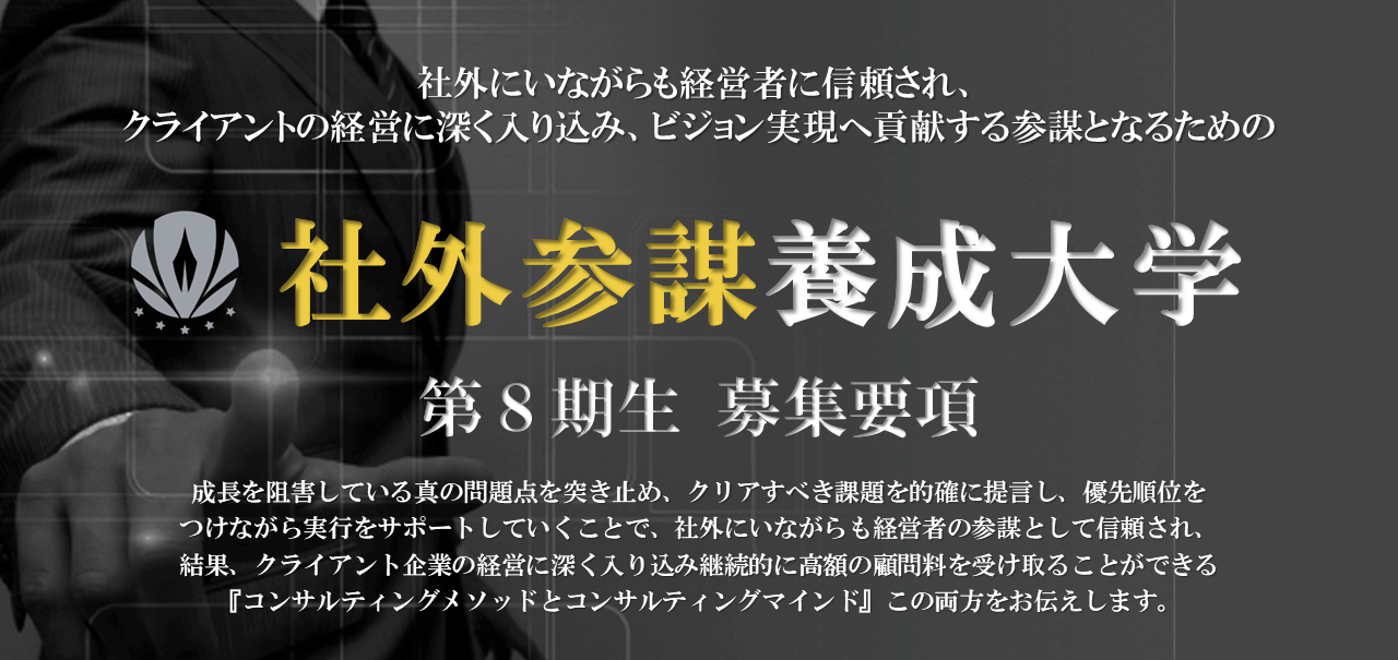 社外参謀を世に送り出すことで、中堅中小企業が必要とする本来のサポートをすることができ、結果、経営コンサルタントの地位も向上していくと思っています。